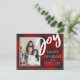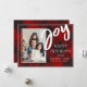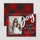 Joy | XADREZ | Cartão de Férias Plana Personalizado. Envie este Cartão-postal de Feriado Personalizado para amigos e familiares nesta temporada de festas. A design tem JOY escrito em letras negrito e espaço para uma de suas fotos favoritas. O cartão pode ser personalizado alterando os nomes e a foto. Dentro da placa tem espaço para uma mensagem de feriado personalizada. A parte traseira da placa tem um plano de fundo de xadrez clássico. Para mais personalizações, contacte-me em mypaperlove2021@gmail.com