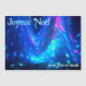 Uma interpretação fractal, cor-de-rosa e azul, das Luzes do Norte refletida na superfície do mar. Qanaaq é um povoado na Groenlândia norte. O texto francês que lê "Joyeux Noё l" aparece em azul e branco brilhantes. Adicione seu próprio texto adicional.