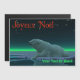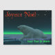 Um momento pacífico na longa noite árctica. Um Urso Polar (Urusus maritimus) repousa na borda de uma área aberta no gelo. As luzes do Norte brilham à distância; as estrelas brilhantes brilham sobre a cabeça. O texto francês que lê "Joyeux Noё l" aparece em vermelho. Adicione seu próprio texto adicional. Os ursos polares estão ameaçados. Quanto tempo mais cenas como esta poderão ocorrer? Por favor, ajude a salvar os Ursos Polares da extinção.