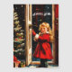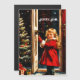 Cartão magnético com um charmoso design gráfico de Natal inspirado em vintage. Uma garotinha fofa em casaco vermelho está parada na porta. Ela está sorrindo. A noite estrelada ao ar livre contrasta lindamente com a festiva árvore de Natal no corredor. Vem com o desejo de Natal francês "Joyeux Noel" . Usando as ferramentas versáteis do Zazzle, você pode personalizar texto e fontes sem esforço. _______________ Design, feito em colaboração com a Canva AI e a Alma Wad, a designer humana.