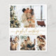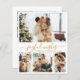 A alegria moderna deseja o roteiro de 4 fotos coladas com o cartão fino natalício em branco e Dourado. Esta placa de Natal minimalista apresenta uma colagem de 4 fotos na frente e uma foto extra na parte de trás. A saudação de "Desejos Jovens" é elegantemente escrita à mão em caligrafia dourada sobre um fundo branco limpo, oferecendo um toque chic e moderno à sua mensagem de feriado. O verso inclui um modelo de saudação personalizável com um motivo de rabisca cardíaco e espaço para uma foto adicional. Perfeito por compartilhar alegria festiva com familiares e amigos, esse cartão personalizado é a maneira ideal de celebrar o feriado no estilo.