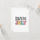 The word : JULY , is displayed in large, colorful, playful block letters with a pastel palette, making it stand out as the focal point of the design.