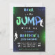 Prepare-se para uma celebração épica de aniversário com nosso "Salto conosco" Trampoline Park Aniversário! Projetado para o mais legal "bruh", este convite apresenta um texto de grafite de tendência que diz "Bruh, venha saltar conosco." O néon brilhando e o fundo do platter adicionam uma vibração suja, enquanto os silhuetas saltadores captam a entusiasmo de saltar em trampolinhos. Este convite dá o tom para uma festa de ação no parque elétrico. Personalize os detalhes para torná-lo exclusivamente seu e convide seus amigos a saltar, sacudir e subir para novas alturas na festa do ano!