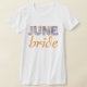 Você vai se casar em junho? Então você vai adorar esta camiseta de noiva bonito e inspirada floral que diz, "Noiva de junho" em fontes românticas e é acentuada com flores. A letra azul esmaecida é perfeita com jeans. Você vai querer vestir sua Camisa de Noiva de junho para seu chá de panela, fora comprando vestidos, ou qualquer dia que você quiser celebrar seu noivado.