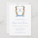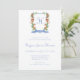 Este adorável convite para ver seria perfeito para apresentar seu doce novo bebê à família e amigos. Ele tem uma crista de aquarela azul monificada cercada por animais verdes e da selva, seu primeiro pacote de alegria inicial e nome, e uma corante aquática azul de coordenação riscada para trás. É único e precioso.