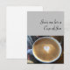 Imagem do cappuccino sobre a cinza com as palavras 'Junte-se a mim para uma taça de Joe'. Vazio atrás para a sua mensagem.
