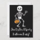 Junte-Se A Nós Para Uma Festa De Halloween Louca. Um convite de excelente para qualquer festa de Halloween. Ele apresenta um desenho animado, esqueleto amigável segurando um truque ou um saco de tratamento.