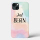 A gentle nudge to start where you are—this “Just Begin” quote design is set against a dreamy pastel watercolor background.