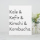 Kale, kefir, kimchi e kombucha texto. Projeto de texto original.