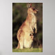 Os cangurus são marsupiais australianos e têm um soco para carregar suas joias de bebês. Um joey ficará na bolsa por até 2 anos antes de não voltar. Os cangurus comem plantas, folhas, grama e flores.