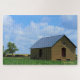 Uma fotografia de um Barn colorido do Kansas com nuvens e céu azul e árvore. Este é a leste de Wilson Kansas no país. Isso é em um QUEBRA-CABEÇA.