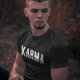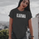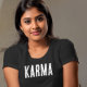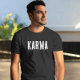 Esta camiseta na moda apresenta a palavra "karma" em letras brancas em negrito, fazer uma declaração sobre o poder da causa e do efeito. Feita com materiais macios e de alta qualidade, esta camisa é confortável de vestir e perfeita para qualquer ocasião. Mostre seu senso único de estilo com esta camisa atraente.