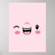 Gentil e divertido, Gentilador rosa, Kawaii Face Poster Impressão. Excelente para crianças e adultos.