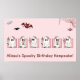 Poster de aniversário do Halloween de Kawaii - Fantasmas Rosa e Lembranças Doces Capturam a magia de um doce aniversário com este poster de Halloween de kawaii! Apresentando fantasmas rosa alegres, teias de aranha pastel e motif de Halloween suaves em tons roxos e cor-de-rosa, esta poster é uma perfeita salvaguarda para os aniversários e as comemorações do Halloween. Personalize-o com o nome e a idade da criança de aniversário ou do animal de estimação para criar um presente memorável que será apreciado muito depois do fim da festa. Uma adição fofa e caprichosa a qualquer quarto!