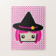 Bonita e divertida Quebra-cabeça de Bruxas de Cabelo Rosa Kawaii para crianças e adultos no Halloween. presente de excelente para os netos em vez de doces.
