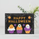 Abóbora-branca-kawaii, cupcakes-fantasma e de globo ocular com fundo brilhante preto