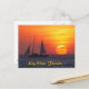 Este belo cartão-postal fotografa um barco a vela emprestado a navegar enquanto o sol da noite se derrete no Golfo do México ao largo de Key West, na Flórida, iluminando o céu da noite com cores brilhantes de amarelo, laranja e vermelho-ouro. Cartões de correio e cartões de "obrigado" também disponíveis.