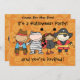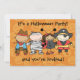 Aqui está um convite de festas de fantasia de halloween especialmente para crianças! A frente apresenta imagens de desenhos animados de crianças vestidas de cowboy, múmia, ladybug, e pirata. O texto preto acima e abaixo das imagens pode ser facilmente feito para dizer o que você quiser, ou deixado como está. As imagens e o texto são colocados em um plano de fundo laranja jack-o-lanterno. A parte de trás do convite tem o mesmo padrão de abóbora, com bastante espaço para o seu texto personalizado. Divertido! *O Clip art usado neste design é protegido por direitos autorais pela Encore Software, Inc., que permite o uso a seus licenciadores. Todos os direitos reservados.