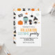 Convite de festas de fantasia de Halloween. Um besta Spooktacular convidando com bruxa fofa, gato, abóbora e frankenstein.