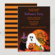Este convite de festas de fantasia de Halloween apresenta uma colagem de um gato preto num cemitério assustador e num fantasma. Cada ilustração usada neste design foi cortada de uma fotografia e, em seguida, era um dispositivo de mão como uma camada. Atualize este convite com as informações da sua festa de Halloween.