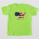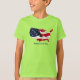 A camiseta infantil é mostrada em branco e marinho com uma impressão de bandeira patriótica, perfeita para o feriado de 4 de julho, esta camiseta é feita de materiais de qualidade suave e artesanato. Personalize este item ou comprar como está.