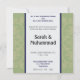 Um cartão bonito muito elegante do convite para seu festa de noivado, celebração do al-kitab do katb, nikkah, walima ou casamento. Decoração ornamentado azul com iniciais dos noivos no fundo verde. Pouca caligrafia árabe de Bismillah - em nome de Allah, a mais gracioso, o mais clemente. Todos os textos são customizáveis a suas necessidades, se você gosta de mudar pias batismais ou cor, clicam sobre "personalizam". Você ama o design mas prefere cores diferentes? Sinta livre contactar-nos!