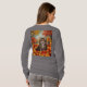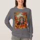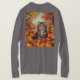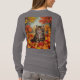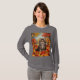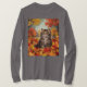 Esta é uma camisa de T-Shirt de Folhas de Kitten. A camiseta é uma camiseta básica para mulheres de manga longa. A design foi criada com arte gerativa. A trabalho de arte é uma pintura digital de um gatinho fofo sentado com folhas vibrantes do outono. O gatinho tem os olhos bem abertos e está olhando para cima. Você pode adicionar um nome com o botão Personalizar.