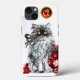 Retrato vibrante e expressivo do gatinho, pintura de cor branca-d-água rosa e tinta.design Legal e artístico com uma pedra brilhante 3D rubis - Lindo para a natureza, amantes de os animais.