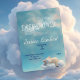 Um gatinho dormindo nas nuvens faz um convite aconchegante para o chá de fraldas de uma menina.