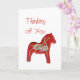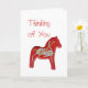 A design neste cartão é de cavalos de madeira talhados e pintados por Julia Morrill