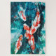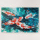 Peixes ornamentais japoneses Kohaku vermelhos e brancos Koi nadando em um lago aquamarino legal com efeitos hídricos. Esta trabalho de arte colorida e vibrante é inspirada pela arte japonesa e asiática e é para peixes ou amantes de Koi em todos os lugares.