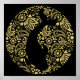 Impressão de arte elegante de um peixe preto de carpa Koi num fundo decorativo. Arte japonesa negra e dourada.