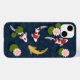 Linda ilustração minimalista do vetor de peixes koi japoneses coloridos nadando entre os lírios de água de uma lagoa. Koi é uma carpa de variedade ornamental bem colorida domesticada no Japão.