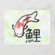 Um postal japonês bonito com o kanji para o koi. Um bom presente para pessoas que amam a cultura japonesa.