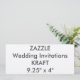 Convites personalizados para casamento da KRAFT - 9,25" x 4". Este delicioso papel de tom terrestre tem um final de textura perfeitamente suave. Ecológico, o Kraft é feito numa fábrica familiar com 100% de energia renovável. 30% de conteúdo poste (reciclado). FEITO NOS EUA. Cartão de 100 lb, cartão de 14 pontos. Grande economia de desconto de compra múltipla de comprar em massa em cartões de convite, até 50% das suas compras para várias encomendas de itens. Convites de Casamento Zazzle - Crie, faça, design seus próprios convites personalizados de casamento deste vazio de design de convite personalizado do Zazzle. Impressão de alta qualidade, cor de cheio, cheio de sangramento em ambos os lados com opções de impressão de ALTA DEFINIÇÃO ou Padrão. Opções de tamanho: 5" x 7", 4,25" x 5,5", 3,5" x 5", 4" x 9,25", 5,25" x 5,25", 4,5" x 6,25", 5,5" x 7,5", 6,5" x 8,75". Opções de Orientação: Vertical (retrato) ou horizontal (paisagem). Opções de acabamento: Semirbrilho, Matte, Ultra-espesso, Laid, Linen, Columizado, Felt White, Felt Ecru, Kraft, Shimmer Pérolas, Shimmer de Champanhe e Prata Metálica. Opções de Forma e Estilo de Cartão: Cantos Padrão ou Arredondados (todos os tamanhos); Colchete, Escalonado, Bilhete ou Etiqueta (apenas 5" x 7"); Circular (apenas 5,25"). Envelopes brancos padrão incluídos, com opções de upgrade. Perfeito para convites de casamento, solteira, chá de panela, janto de ensaio, salvar a data etc., e para qualquer convites de festas de RSVP, como aniversário, aniversário, 16 e Quincenera; ou para convites para eventos e exposições corporativos - para fotos, imagem, texto, noiva e noivo, ou para sua própria criação personalizada de designs.