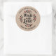 Um adesivo personalizado "feito com amor" em um fundo cor kraft. Possui uma bonito coroa de morango e as palavras "feito com amor" em uma letra elegante. Um bonito toque final para todos os presentes feitos à mão. Projetado para você pelo Blackberry Boulevard.