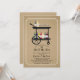 Carrinho de Bar moderno Estoque o Convite para Chá do Casal do Bar com um carrinho de bar com garrafas de álcool e vinho e óculos de bebida em um fundo kraft popular com um lado de trás correspondente.