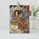 Convites de Kuniyoshi Samurai. Bloco de madeira Ukiyo-e do Edo Período Japão. Utagawa Kuniyoshi desenhou algumas das mais vibrantes e impressionantes pinturas samurai do período Edo. Sua representação de Shimamura Danjo Takanori mostra o samurai em armadura de cheio ou carregando sua naginata enquanto cavalgava as ondas do mar nas costas de dois caranguejos azuis. O samurai foi atingido por múltiplas setas, mas luta ferozmente com ondas e ascensões de caranguejo no fundo. Um presente de excelente para fãs de Utagawa Kuniyoshi, pinturas de samurai e arte japonesa.