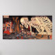 Kuniyoshi Skeleton poster. Corte ukiyo-e de 1845 Edo, Japão. Utagawa Kuniyoshi foi um dos últimos mestrados do estilo ukiyo-e, e Mitsukini Defying The Skeleton é uma de suas obras mais reconhecidas e celebradas. O lenhador mostra o herói Kuniyoshi desenhando uma espada contra um esqueleto gigante que o encara de forma ameaçadora. Um belo e assustador presente para fãs de Utagawa Kuniyoshi, pinturas de esqueleto e arte japonesa.