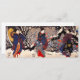 Kuniyoshi Três mulheres convidam. Ukiyo-e do Edo Period Japan. Uma das obras mais famosas de Utagawa Kuniyoshi, Three Women é uma design de três blocos de madeira em pano, mostrando três japonesas ao lado de uma árvore num dia coberto de neve. As flores vermelhas do inverno florescem magicamente, e todas as três mulheres são aparentadas em trajes japoneses tradicionais com entalhes de madeira. Uma mulher carregar um guarda-chuva japonês. Um presente bonito para fãs de Utagawa Kuniyoshi, Ukiyo-e e arte japonesa.