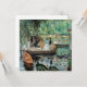 Pierre-Auguste Renoir. La Grenouillère.. uma bela paisagem no rio em tons verdes. Há barcos na costa. No meio do chão, um grupo de pessoas se posiciona em uma passagem por baixo de uma árvore de espalhamento. Ao fundo há yazta e árvores. Reprodução de famosas imagens de arte no dominio público.