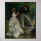 Esta pintura está exposta no Museu Getty. Mostra que duas pessoas bem vestidas são representadas em uma paisagem verde, provavelmente uma floresta ou parque perto de Paris. À esquerda está uma mulher um pouco tímida com um vestido branco longo. O homem à direita veste um conjunto de roupas algo informal, mas elegante e um chapéu marrom com fita vermelha ao redor. Ele segura a mão da mulher para guiá-la pelo terreno denso e não cultivado. Com o braço esquerdo, empurra os arbustos para o lado para que possam continuar no pequeno caminho que caminham. A mulher levemente levanta seu vestido branco e tem sua cabeça virada sobre seu ombro direito como se estivesse hesitante em continuar pelo caminho. Parece haver alguma ligação de amor entre os dois. O casal está desfrutando de um passeio relaxado pela paisagem, e a técnica de pintura de Renoir os faz se misturar à paisagem. Renoir usou a luz nessa pintura para enfatizar a presença da mulher e o caminho pela floresta. O homem está parado na sombra e apenas partes de suas calças, mãos, colarinho, e que captam alguma luz solar. Uma discussão mais detalhada sobre esta pintura pode ser encontrada em https://www.tripimprover.com/blog/la-promenade-by-pierre-auguste-renoir.
