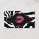 Cartão de visita da beleza dos termas do salão de beleza do maquilhador com lábios e fundo animal do impressão da zebra moderna.