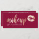 design de maquiagem de na moda com texto e lábios de maquiagem de rosa de cobre falsos.