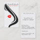 Cartão de visita com uma bela moça no estilo da moda, belos lábios em preto vermelho e branco. Perfeito para a promoção da sua empresa. Adequado para maquiadores, cosmetologistas, extensão de lash, cabeleireiros, estilistas, spa salon, cabelos e salão de beleza, artista de manicura ou agência de modelos. Personalizável.