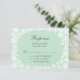 Delicar os flocos de neve em um padrão antigo, em um fundo de menta gelada, sotaque este RSVP coordenador para o Lace de inverno no Convite para Casamento de Casa de Casa de Moeda. Ele é mostrado no papel básico; no entanto, recomendo o peso e a textura do papel de linho, ou o acabamento brilhante do papel de gelo metálico para impressão.