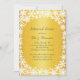 Flocos de neve brancos e brilhantes sobre fundo de ouro ilustrado decoram este convite para o Janto de ensaio. Se forem necessários itens adicionais para o seu evento, entre em contato conosco em prettyfancyinvites@gmail.com com sua solicitação. Role para baixo para ver outros itens de coordenação na coleção.