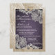 Este convite rústico chique do casamento do olhar da sarja de Nimes, do laço & do couro caracteriza um fundo de couro com sarja de Nimes e o gráfico delicado do laço do marfim. Há umas abas de couro do olhar com rebites demasiado. Se você quer uma sensação rústica do país acoplado com um chique e um olhar elegante então este ajustaria certamente o humor. Você pode facilmente personalizar este em linha. Olhar da sarja de Nimes da ameixa e couro colorido champanhe. (tudo é tinta)