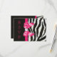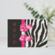 Cartões de resposta personalizados impressos em papel de convite de sua escolha. Elegantes cartões de RSVP personalizados com listras de zebra pretas e brancas e laço impresso em rosa quente para qualquer evento: - casamentos, chá de bebê, chá de noiva, festa de aniversário de mulheres, festas de sweet 16, celebrações de quinceanera, etc. com padrão de listras de pelo de zebra animal preto e branco impresso, imagens de laços e fitas rosa quente brilhantes e fofos e jóias de brilho de diamantes digitais em um fundo preto com texto rosa quente em letra cursiva elegante. Por favor, note: Todos os convites no Zazzle têm imagens impressas planas. Esses cartões sofisticados, fashion, divertidos e glamorosos são decorados / impressos em ambos os lados. Cartões personalizados lindos, chiques, modernos e trendy. O texto, a fonte e a cor da fonte podem ser personalizados para atender às suas necessidades. Se precisar de ajuda para personalizar seu produto, entre em contato comigo
