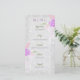 Este adorável menu romântico tem uma camada semelhante a véu sobre delicada renda de jardim de rosas cinza suave pintada à mão e buquê com um laço rosa chic transparente Coquette.